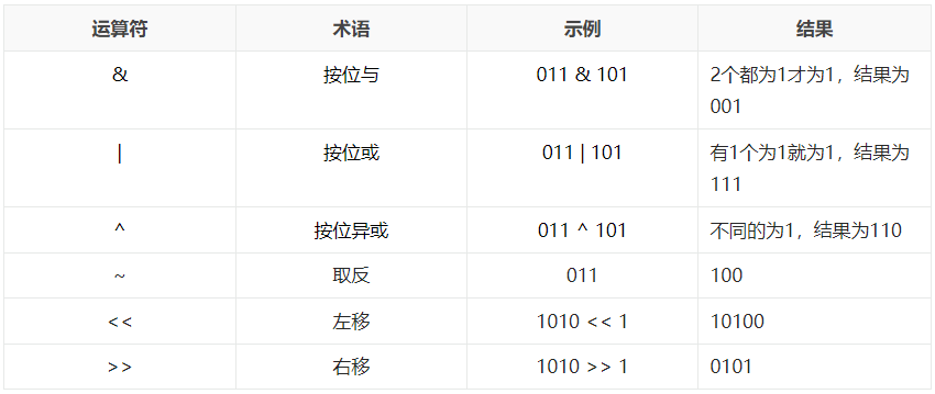 下图是位运算符的实际操作